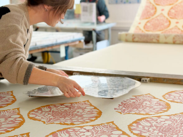 Handblock Ready to Wear Wallpaper Custom Installations Interesting Title Here Fabrics and Wallpapers are available to the trade through showrooms Pillows & Runners are available through Room & Board Rugs are available to the trade through Holland & Sherry